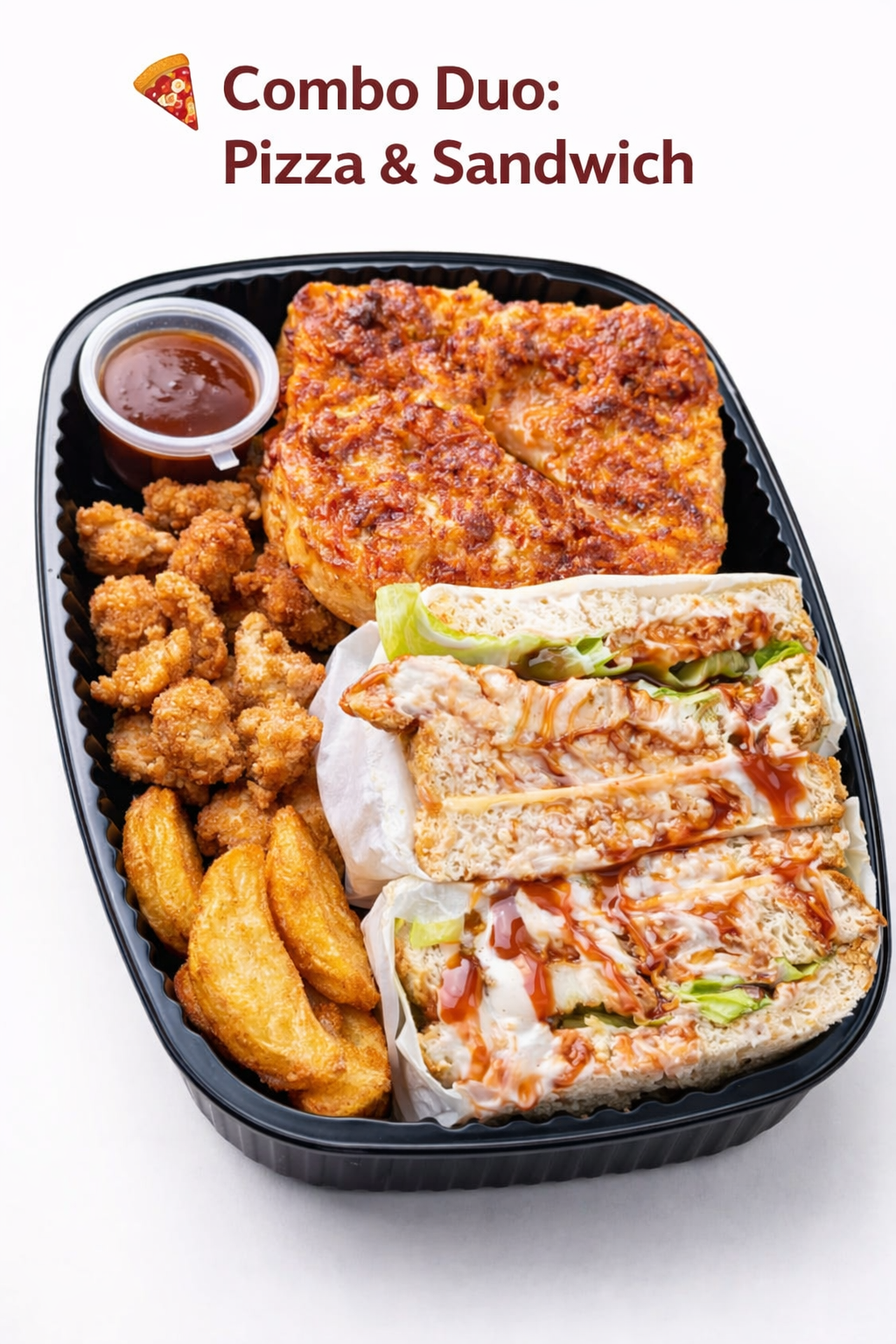 • Crispy popcorn chicken bites and golden potato wedges for the perfect crunchy sidekick