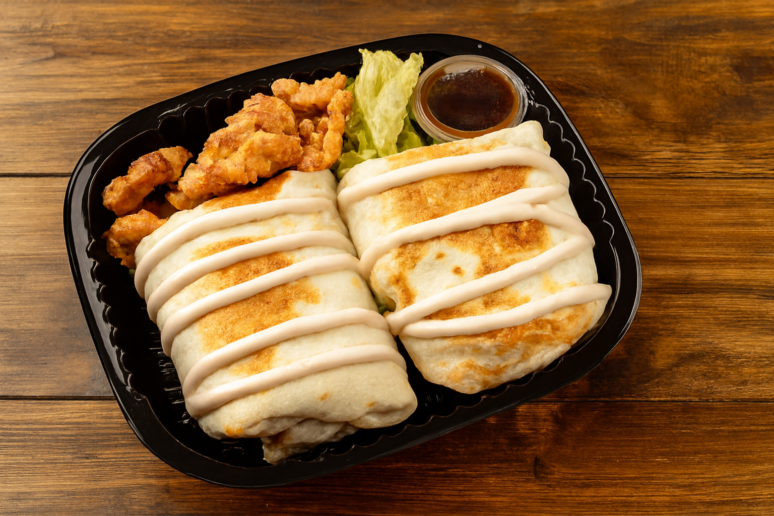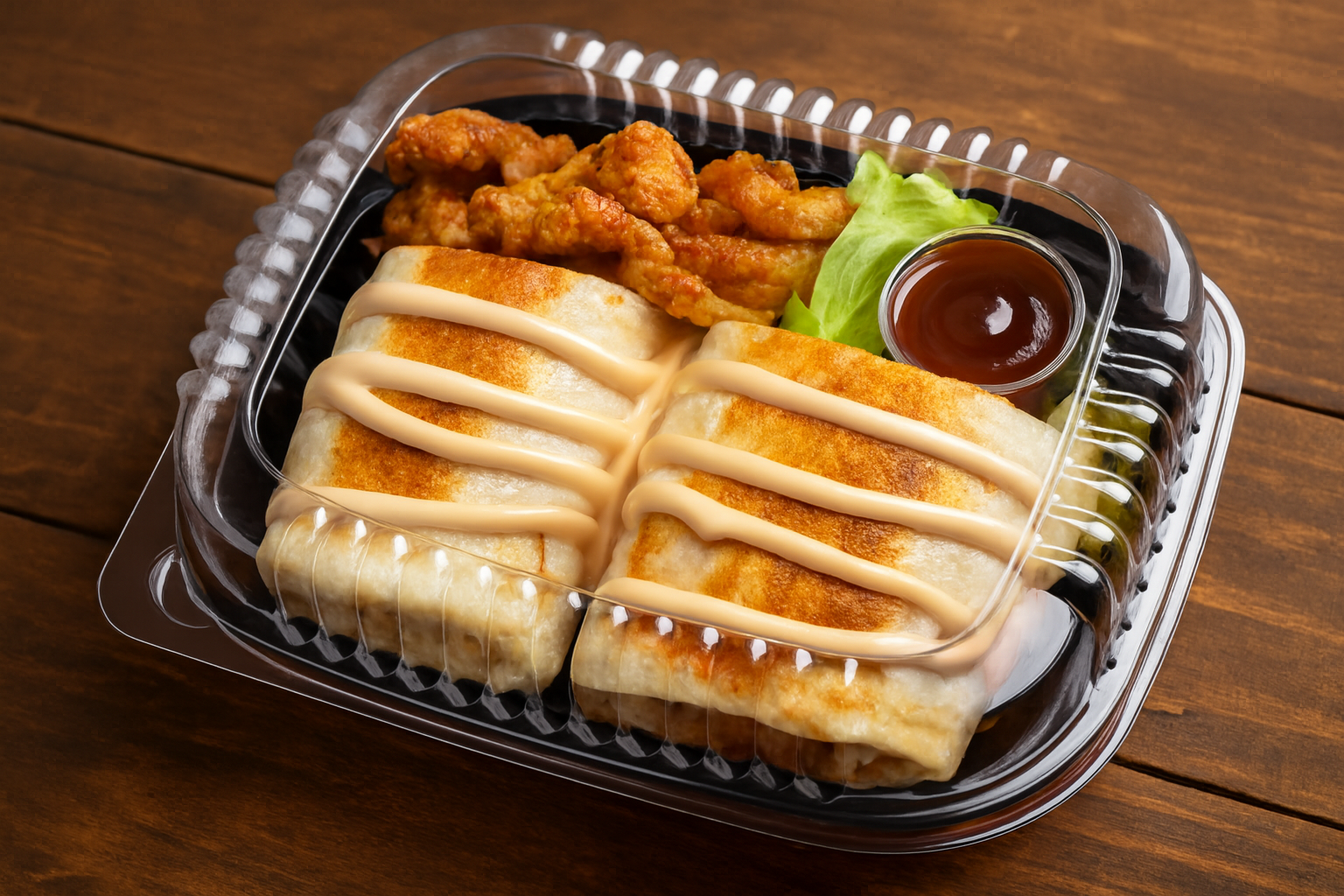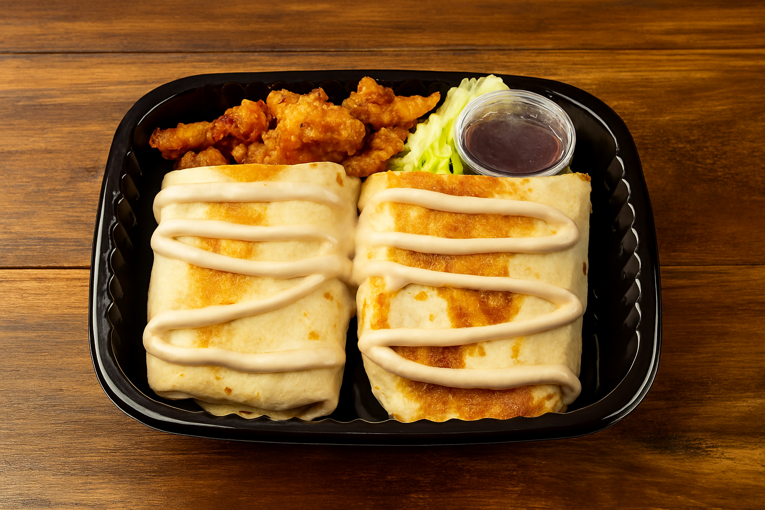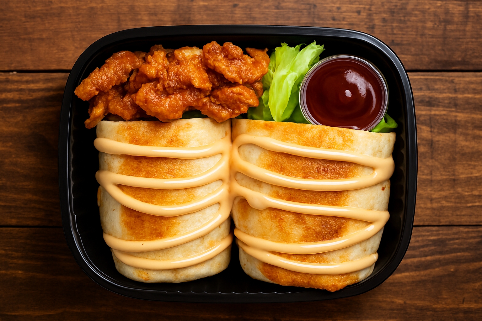 Perfectly portioned for a filling lunch or dinner, this combo balances the freshness of a wrap with the fun of crunchy sides. Packed in a clear container, ready to grab and go.