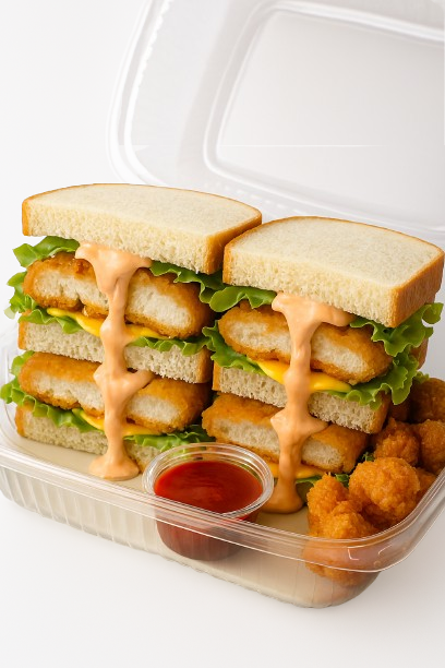 “The Double Delight”: Two hearty sandwiches filled with tender chicken—no popcorn, just pure flavor. A full meal for $800.